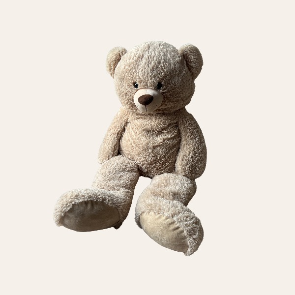 Deze grote beige knuffel beer is perfect voor het creëren van een rustige en natuurlijke sfeer tijdens een bruiloft, event of babyshower. De zachte beige kleur past prachtig binnen moderne, boho en neutrale styling.