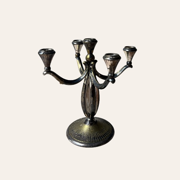 Deze 5-armige gouden kandelaar is een echte blikvanger op tafel en zorgt direct voor een chique en sfeervolle uitstraling. De klassieke vorm en vintage afwerking maken deze kandelaar perfect voor elegante settings.