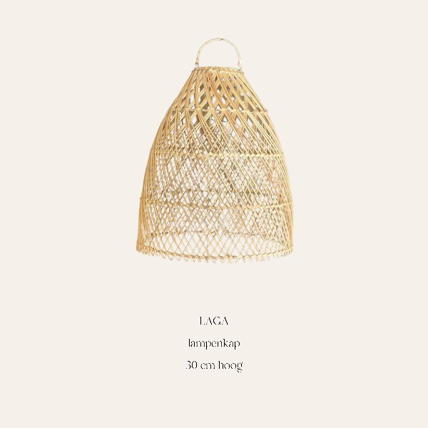 Deze lampenkap LAGA (ca. 30 cm hoog) is een compacte en stijlvolle toevoeging aan jouw decoratie. Dankzij het natuurlijke materiaal en de open structuur creëert deze lampenkap een warm en sfeervol lichteffect.