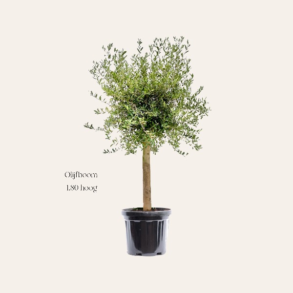 Deze echte olijfboom van ca. 1.80 meter hoog is een prachtige toevoeging aan jouw styling en zorgt direct voor een natuurlijke en mediterrane sfeer.